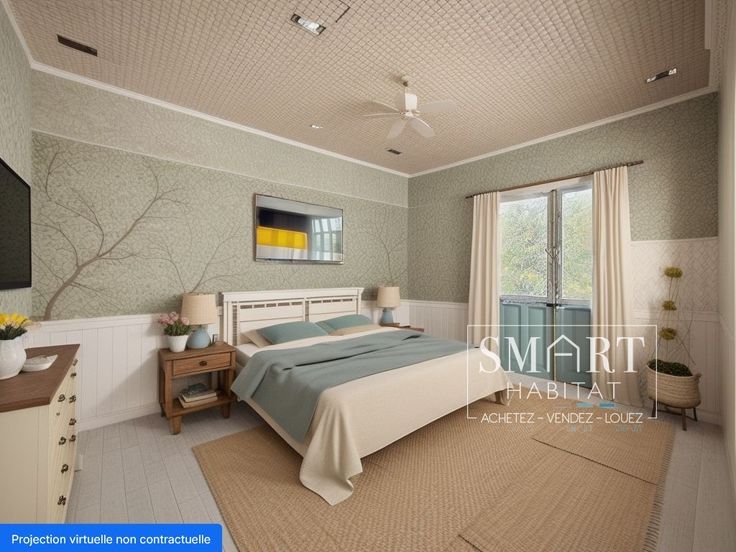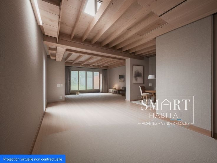 La maison se compose comme suit: un hall d'entrée, une pièce d'eau, un séjour de 42 m², un espace cuisine, une seconde pièce d'eau, deux chambres et un bureau/dressing.