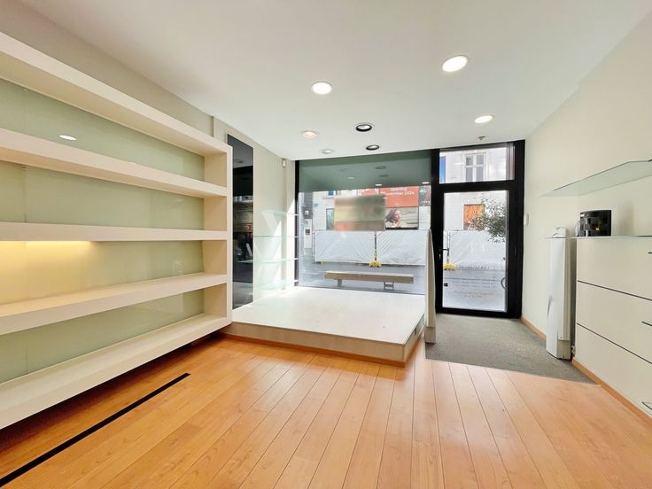 De handelsruimte (gelijkvloers) beschikt over een oppervlakte van 100m² met 5 meter gevelbreedte, voorzien van etalage volledig in glas.