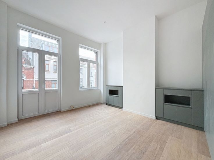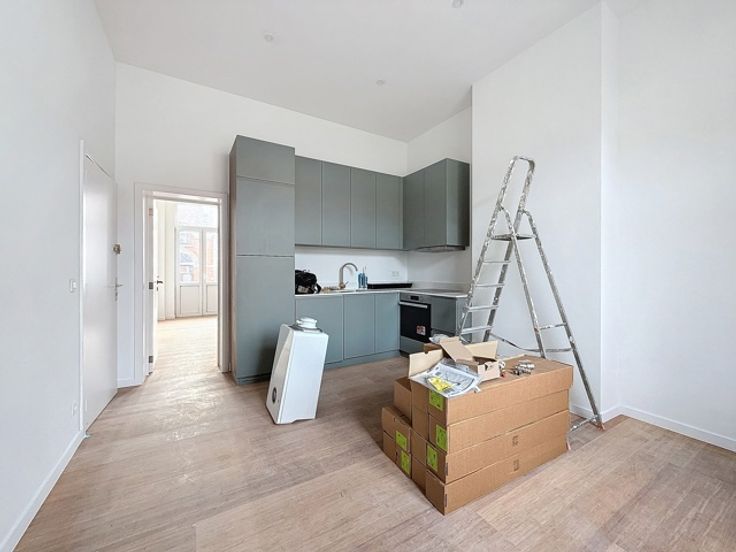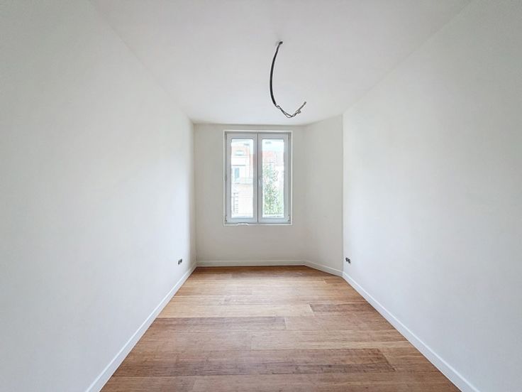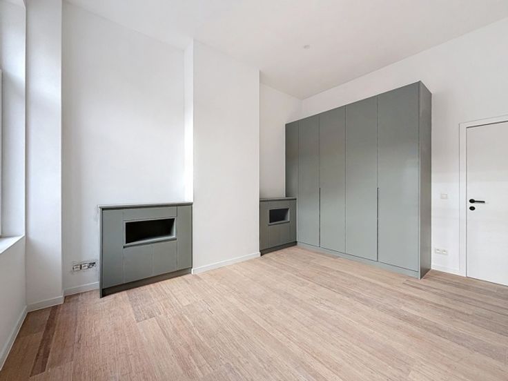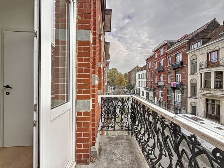 Square Marie-Louise / Ambiorix: In een kleine mede-eigendom van 4 eenheden, charmant appartement bestaande uit een woonkamer, aparte keuken, aparte slaapkamer en badkamer. Ruim terras. Tweede slaapkamer in de kelder. INFO/BEZOEK op 02/533.40.40 of www.oralis.be