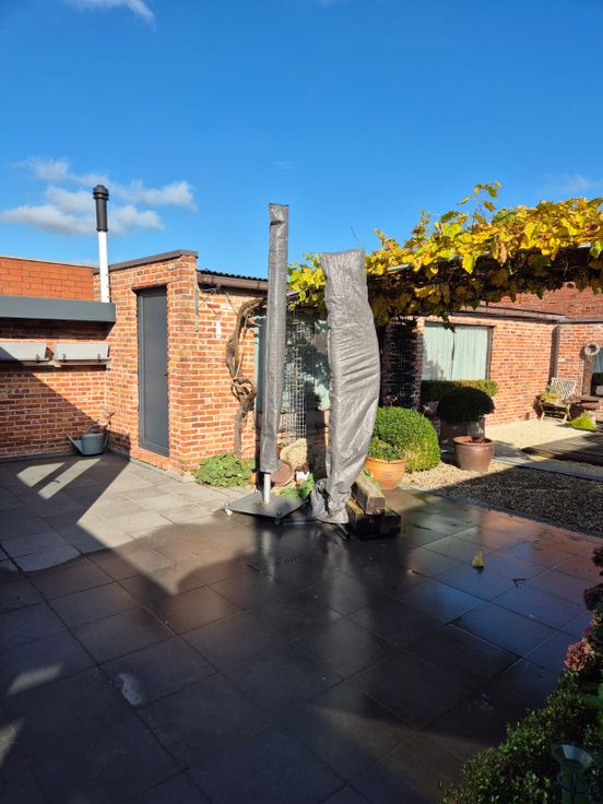 Tuin: ZO-gericht + half verhard met regenpunt (1000l).