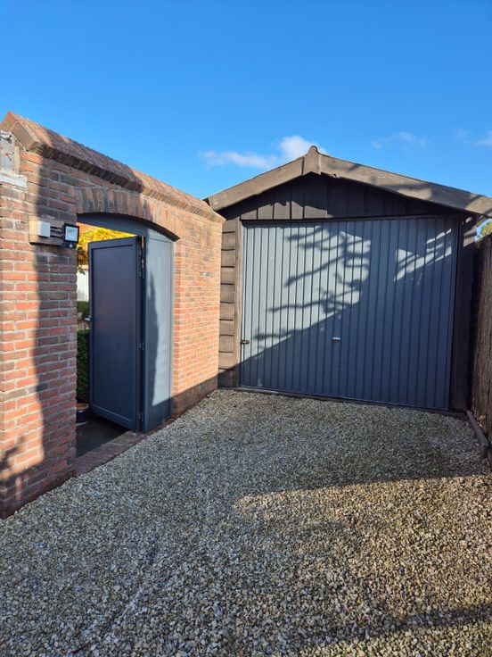 Uitpandige garage en tuinberging