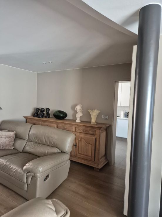 1e verdiep: 4 slaapkamers (2 op te frissen), badkamer (te renoveren), toegang met schuiftrap naar grote, geïsoleerde zolder