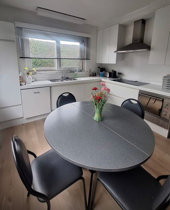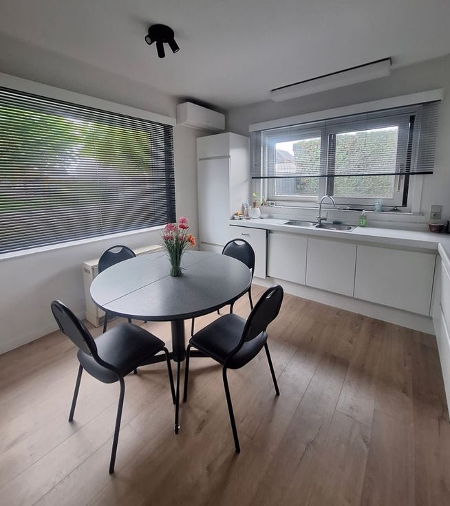 De benedenverdieping verwelkomt je met een royale inkomhal die leidt naar een lichte en ruime leefruimte, ideaal voor gezellige avonden met het gezin. De aparte keuken biedt meer dan voldoende ruimte om ook gezellige maaltijden te nuttigen, waardoor koken en samen genieten een waar genoegen wordt.