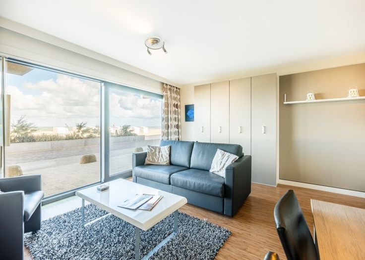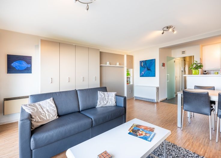 Deze studio werd als volgt ingedeeld: inkomhal met vestiaire | badkamer met douche, lavabo in meubel en toilet | volledig uitgeruste en open keuken | ruime leefruimte met zicht op zee.