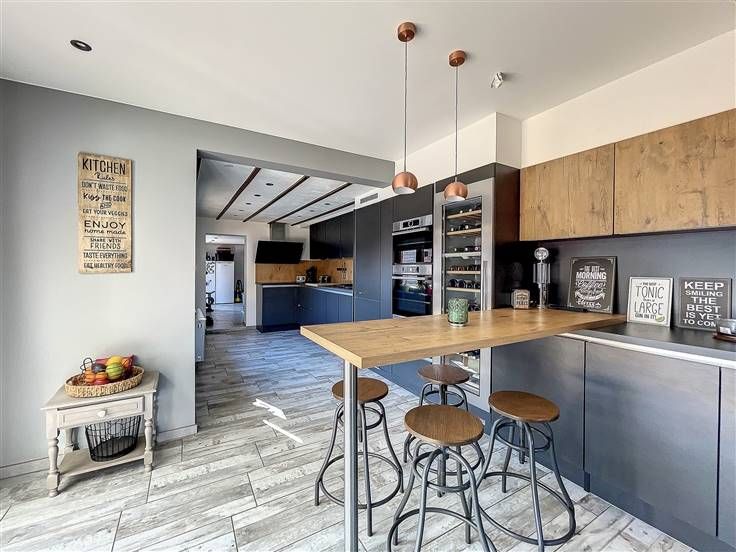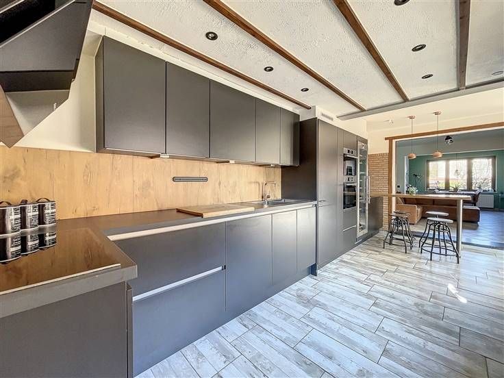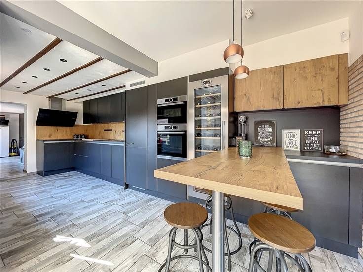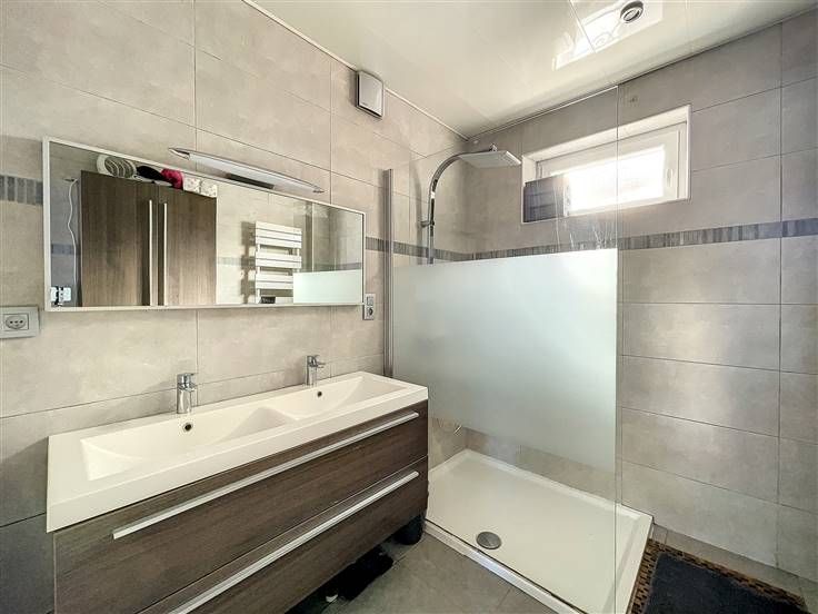 Rez: hall d'entrée, salon, salle à manger, superbe cuisine équipée, buanderie, wc séparé, salle de douche.