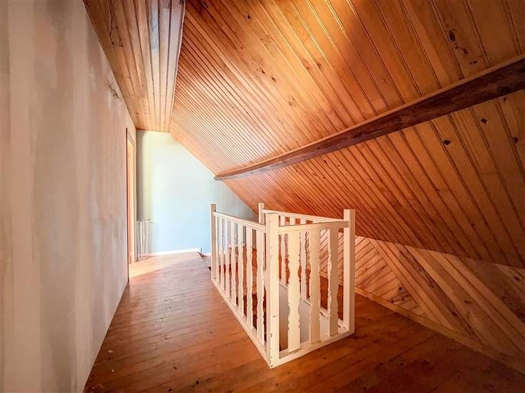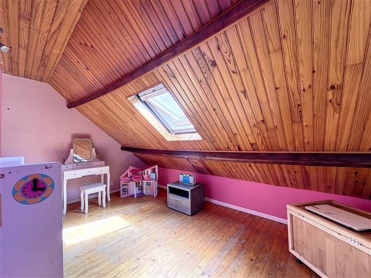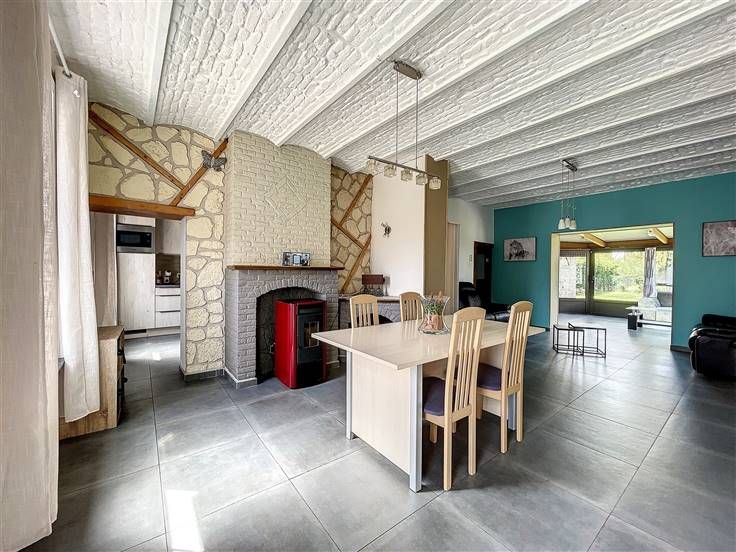 Rez: salle à manger, salon, cuisine équipée, véranda, salle de douche + buanderie, chambre, pièce débarras.