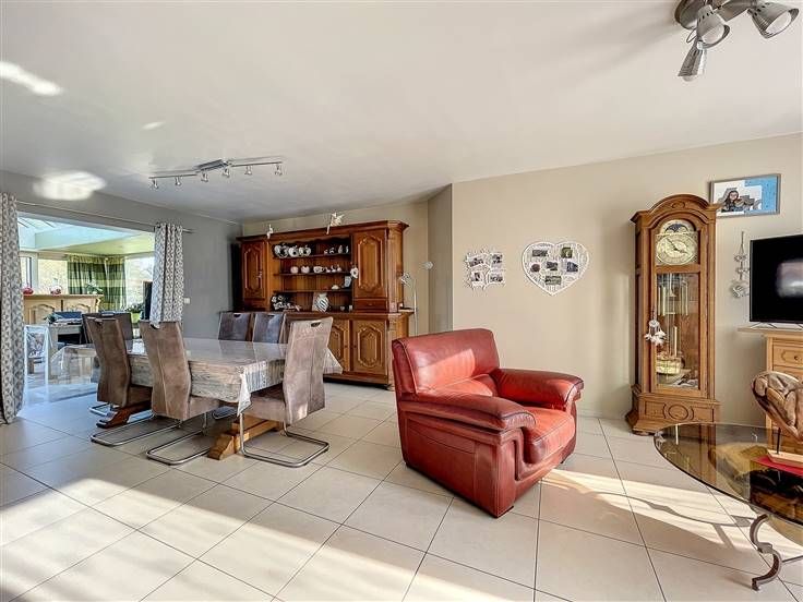 Sorry er is geen nederlandse vertaling beschikbaar. *** SOUS COMPROMIS DE VENTE - EN ATTENTE D'ACTE NOTARIAL *** MAGNIFIQUE ET LUMINEUSE VILLA TOUT CONFORT SUR ET AVEC ENVIRON 12 ARES SE COMPOSANT COMME SUIT: Rez: hall d'entrée, cuisine équipée ouverte sur le living, très belle véranda avec toit panoramique, wc. Etage: hall de nuit, 3 chambres, bureau et salle de bains (baignoire et douche). Vaste jardin arboré et clôturé, terrasse, piscine autoportante (liner a rénover). Garage et chaufferie. Superbe maison en excellent état général et aux agréables espaces de vie. PEB: D - PEB N°:20220304018988. Faire offre à partir de 320.000€. OFFRE ACTUELLE à 335.000 €.
