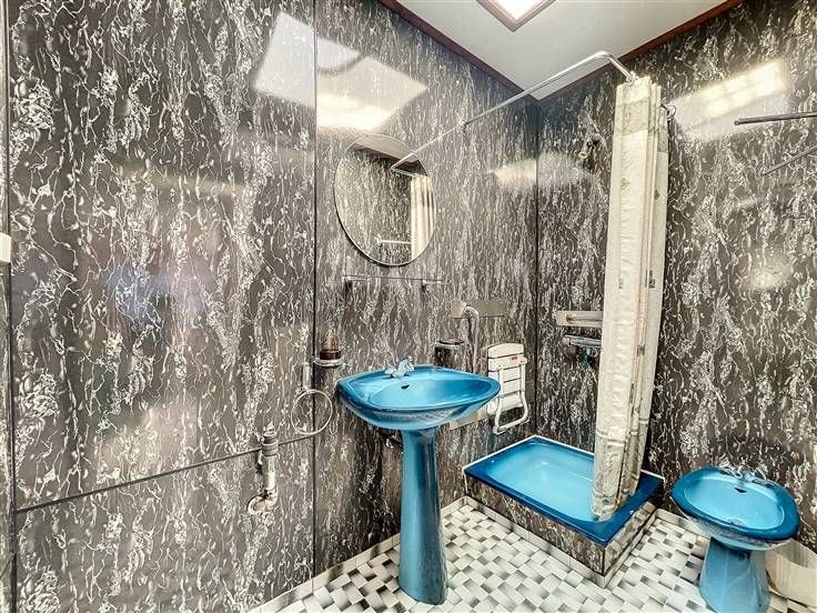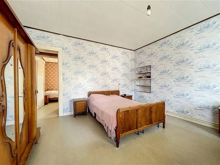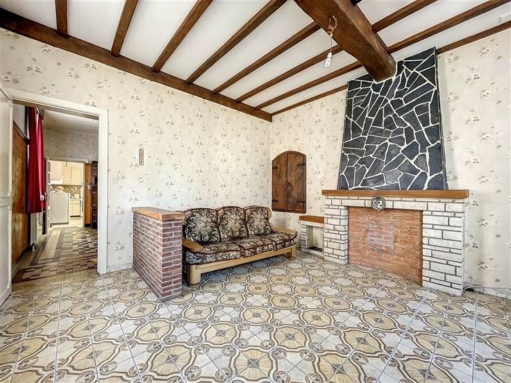 Rez: salon, salle à manger, cuisine, salle de douche avec wc et débarras.