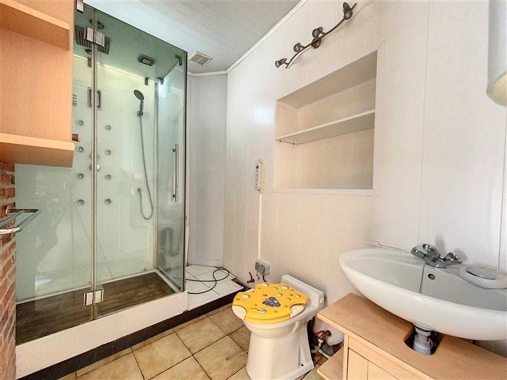 Au rez: salon, salle à manger, cuisine, salle de douche avec WC.