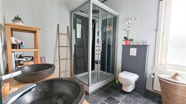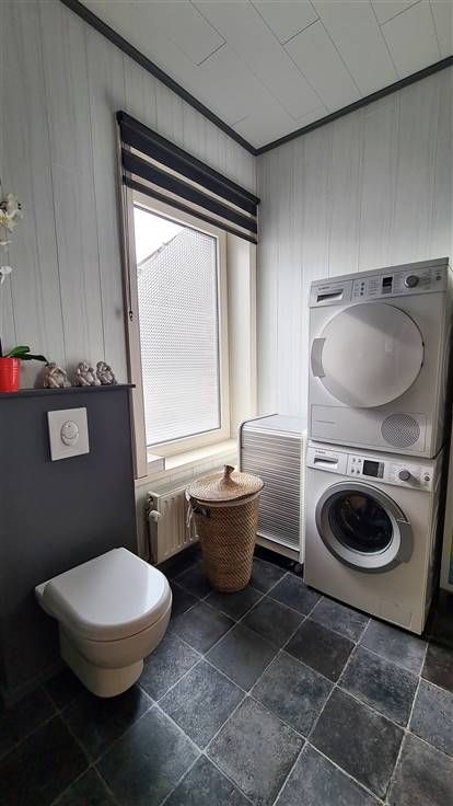 1er étage: une chambre (actuellement utilisée comme bureau), salle de douche et coin buanderie.