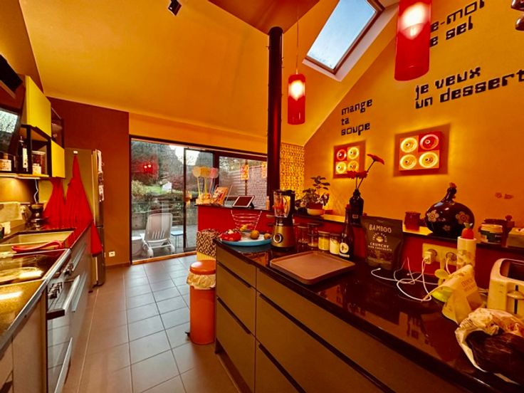 Magnifique Maison de +/- 184 m2 entièrement rénovée. Celle-ci se situe proche de toutes les facilités dans le quartier calme et recherché des Pagodes. Elle est composée comme suit: REZ: Hall d'entrée, Grand Séjour de +/-45m2 (Salon + Salle à Manger), Cuisine équipée, 1 WC séparé, 1 Dressing pouvant également faire Chambre ou Bureau. 1er ETAGE: Hall de Nuit, 1 Chambre de +/- 14m2, 1 Bureau de +/-12m2, Salle de Douche, WC séparé. 2ème ETAGE: Hall de nuit, 2 Chambres (+/-17m2). TERRASSE & JARDIN. CAVES sous toute la maison aménagées en salle de sport et espace Buanderie. GARAGE moyennant négociations. Faire offre à partir de 475.000€ sous réserve de l'acceptation des propriétaires. A visiter sans tarder !!! Contact direct agent: 0479/60.38.34