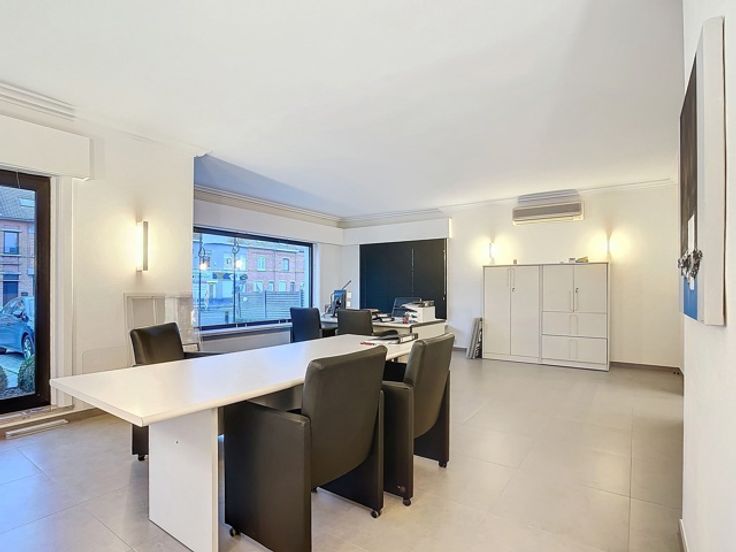Op een uitstekende locatie in Ninove bevindt zich deze kantoorruimte. De kantoorruimte is voorzien van een aparte ingang aan de zijkant van het gebouw, alsook een toilet en keuken die gemeenschappelijk te gebruiken zijn met het verzekeringskantoor Gillis. Vooraan het gebouw zijn er parkeerplaatsen.