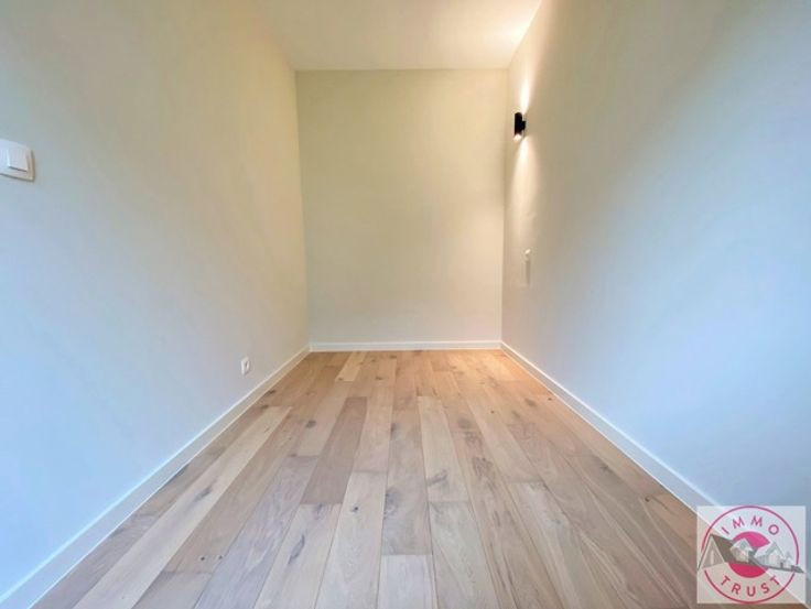 Situé à Sterrebeek, à proximité des transports et commerces, superbe appartement rez-de-chaussée entièrement neuf de 110m² comprenant un séjour de 45m², une cuisine US super équipée, une buanderie, 2 chambres, une salle de bain, 2 terrasses, un jardin , 2 places de parking ( compris dans le loyer ), et une cave. Charges de 75€ pour les communs. Pompe à chaleur, chauffage par le sol et panneaux solaire. PEB A ! Libre. A voir sans tarder !!