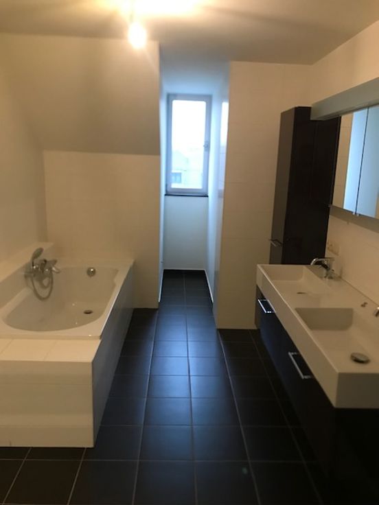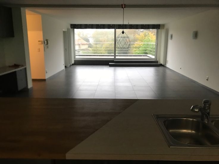 Ruim appartement centraal gelegen en nabij station. Op de eerste verdieping woonkamer met open ingerichte keuken, toilet en berging. Achteraan mooi balkon van 40 m². Op duplexverdieping 2 slaapkamers,badkamer met douche, bad en dubbele lavabo, apart toilet.