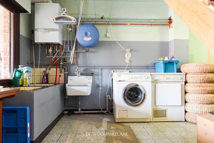 Op het gelijkvloers is er een diepe garage en wasplaats waar reeds de aansluitingen zijn voorzien voor een extra badkamer, handig! Daarnaast is er een tweede trap die uitkomt in de veranda.