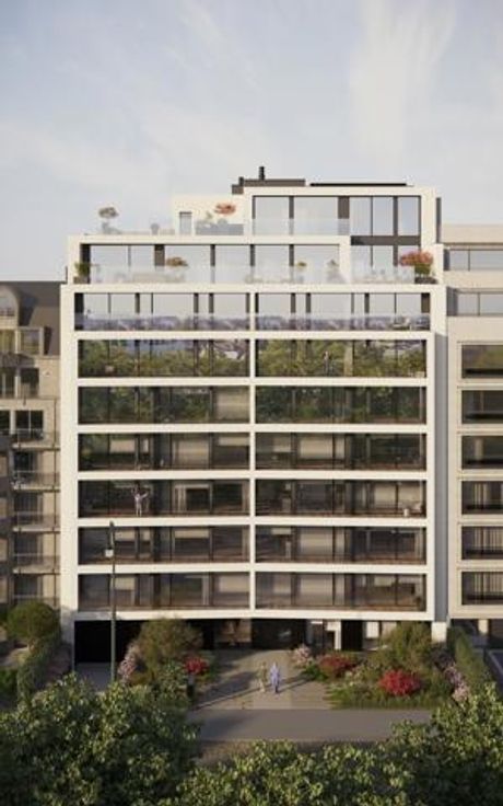 Vaneau Lecobel heeft het voorrecht u dit 2-slaapkamer appartement van ± 119 m² voor te stellen op de eerste verdieping van het gloednieuwe project "Metropolitan" van ontwikkelaar Promiris, gelegen aan de rand van de Abdij Ter Kameren, op één van de meest prestigieuze lanen van Brussel. Dicht bij de Louizalaan en de Franklin Rooseveltlaan biedt dit luxueuze appartement een grote inkomhal van ± 8 m², een gastentoilet, een ruime en lichte woonkamer van ± 48 m² met een volledig uitgeruste open keuken en directe toegang tot het terras van ± 5 m², twee mooie slaapkamers van ± 16 m² en van ± 10 m² met directe toegang tot het tweede terras van ± 8 m². Elke slaapkamer heeft zijn eigen badkamer, een grote badkamer van ± 9 m² met een apart toilet voor de eerste en een doucheruimte met Italiaanse douche voor de tweede. Een wasruimte is voorzien. Dit uitstekende gebouw met een elegant design zal uniek zijn in Brussel dankzij de ideale ligging en dankzij de uitzonderlijke afwerkingen geïnspireerde door de modernistische architectuur. Parkeerplaats en kelder zijn extra. Driedubbele beglazing, vloerverwarming, warmtepomp, ventilatie met dubbele stroom, zonnepanelen. Energieprestatie A. Oplevering voorjaar 2025. Verkoop onder btw-regime 21 % voor de bouwwaarde en onder registratierechten 12,5 % voor de grondwaarde. Aarzel niet om ons te contacteren voor meer informatie over het Metropolitan project per telefoon 02/669.21.70 of per mail promotion@vaneau-lecobel.be.