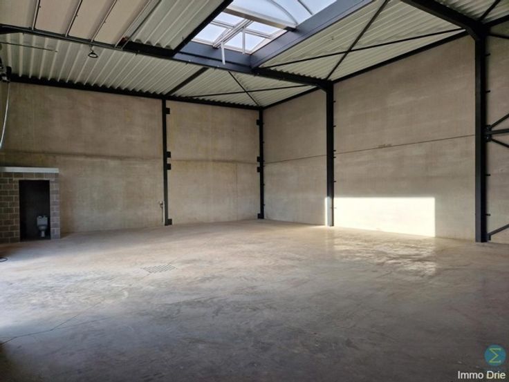 Nieuwbouwunit voor opslag van goederen gelegen in kleine KMO-zone. Beschikbaarheid: onmiddellijk. Huurprijs: €1225,00 + €100,00 servicekosten.