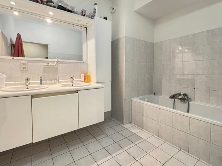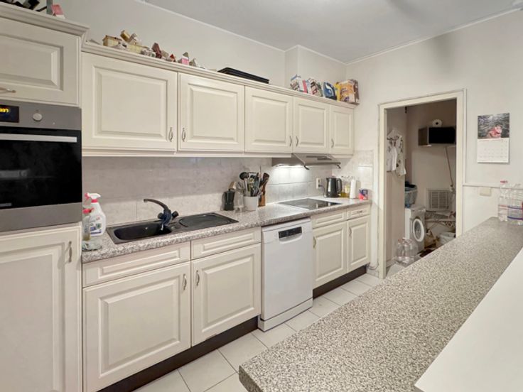 Neder-Over-Heembeek, Peter Benoît 15 L: op de 1e verdieping / 3 met lift, appartement bestaande uit een inkomhal met vestiaire, lichte woonkamer met open uitzicht, open keuken, bijkeuken, 2 slaapkamers, badkamer, apart toilet en kelder. 2 terrassen. Individuele verwarming op gas, aluminium ramen met dubbele beglazing, thermostaat, intercom. Momenteel verhuurd. Informatie en bezichtiging CENTURY 21 Best House 02 268 21 50