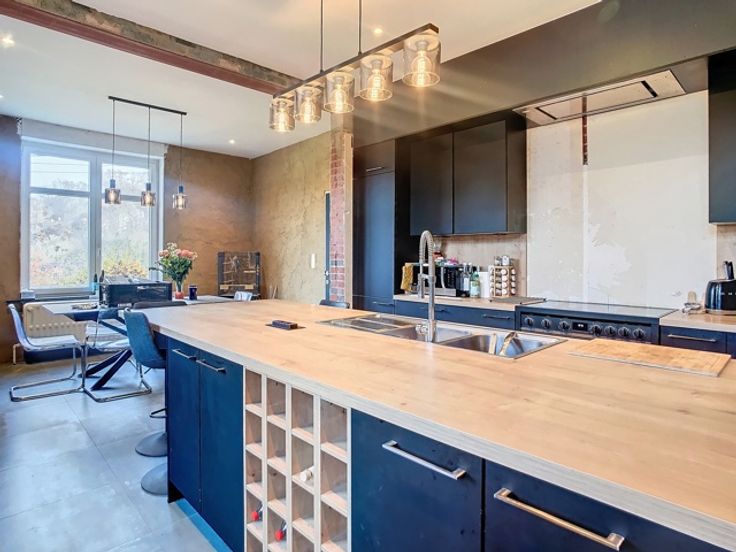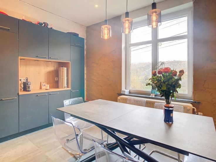 Offre àpd 290 000 €- Bel immeuble en pierre à rénover. Hall d'entrée, cuisine récente, salle à manger et buanderie. Espace salon et bureau. Aux étages : 4/5 chambres, salles de bains, bureau,...nombreuses possibilité d'aménagement. Garage et terrasse en façade et 2 box en partie arrière latérale. Vaste jardin en partie arrière. Travaux déjà effectués : Cuisine neuve - Nouveau châssis PVC avec volets électriques au rez-de-chaussée - Nouveau compteur électrique - Chaudière chauffage central neuve. INFO & VISITE : ipa.romedenne@skynet.be - 0475/49 22 20