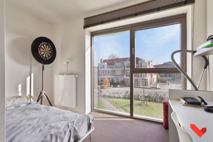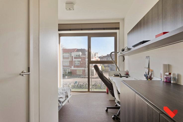 In residentie 'Woods' bieden we deze uitnodigende studentenkamer aan, gelegen op de eerste verdieping en voorzien van alle gemakken. Met een uitstekende locatie nabij het levendige centrum van Leuven en op loopafstand van het station, biedt deze kamer de ideale uitvalsbasis voor elke student. De kamer zelf is slim ontworpen en beschikt over een eigen badkamer voor extra privacy. Dankzij grote ramen geniet je hier van een overvloed aan natuurlijk licht en een aantrekkelijk uitzicht. Het interieur is efficiënt ingericht: een opklapbed, een vaste bureau, ingebouwde kasten en een koelkast zijn naadloos geïntegreerd, waardoor er optimaal gebruik wordt gemaakt van de beschikbare ruimte. Residentie 'Woods' biedt tal van extra voorzieningen. Op elke verdieping zijn er twee ruime keukens met terras, waar je kunt koken en socializen met de andere bewoners. Daarnaast is er een gezellige ontspanningsruimte met zithoek, tv en kickertafel om even te ontspannen. Voor fietsen is er een afgesloten stalling, en een wasruimte biedt extra gemak voor de bewoners. Deze kamer is momenteel verhuurd en biedt een aantrekkelijk rendement voor investeerders. Interesse? Neem snel contact op met BVM Vastgoed via 016/23.21.45 of info@bvm-vastgoed.be.