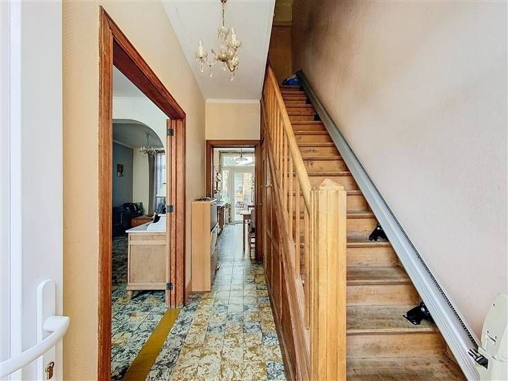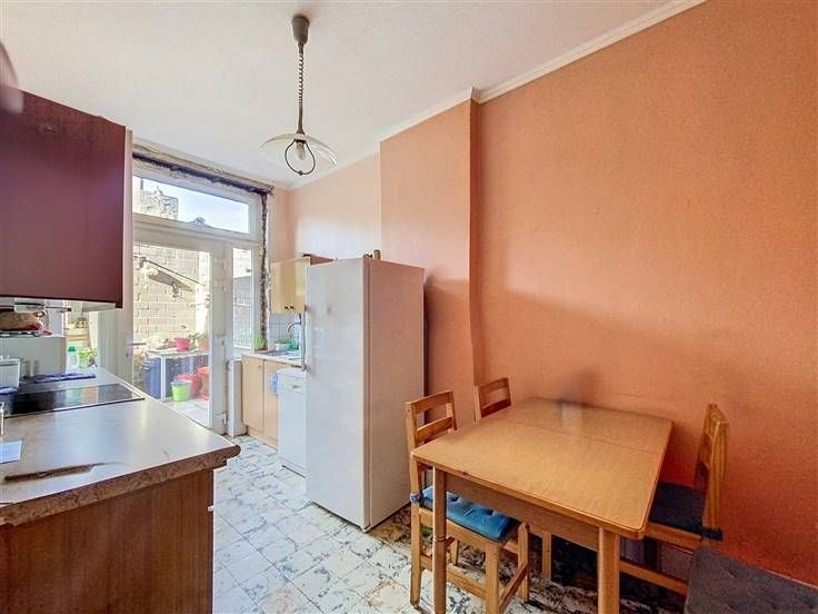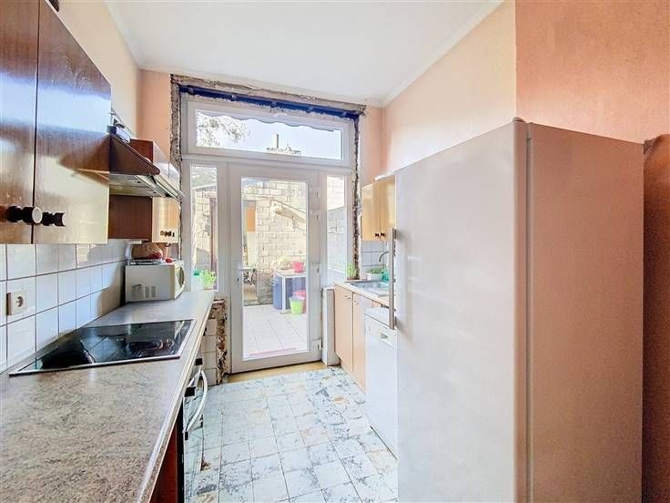 Rez: hall d'entrée, WC séparé, living/salon, cuisine semi-équipée.