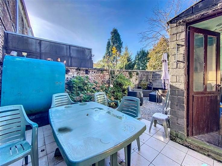 Jardin, terrasse et remise.