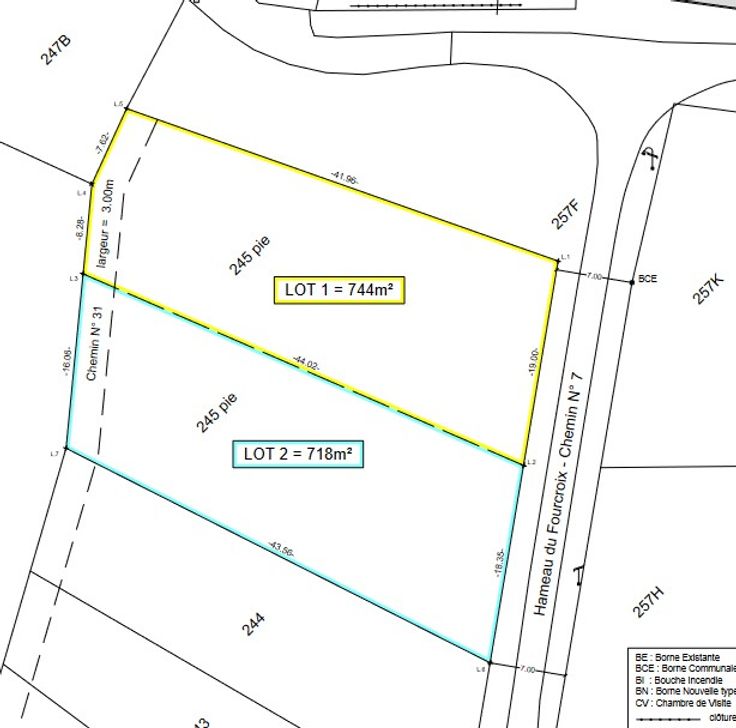 Magnifique parcelle de +/- 718 m² et 18.5 mètres de façades à la rue dans le hameau du Fourcroix à Blandain.