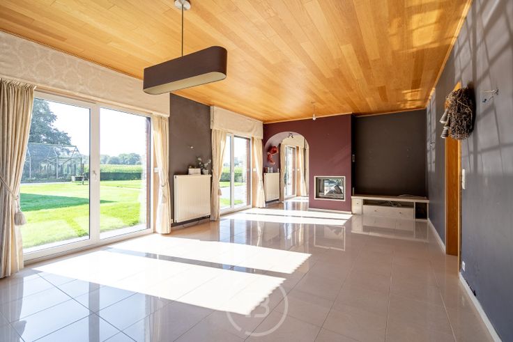 Deze uniek gelegen eigendom biedt de ultieme rust en privacy te midden van het groen. Met een totale grondoppervlakte van ca. 2 hectare, omringd door uitgestrekte velden, is dit een waar paradijs voor natuurliefhebbers. Het verscholen domein, bereikbaar via een lange dreef, beschikt over een hoofdwoning, 2 bijgebouwen die voor tal van doeleinden kunnen gebruikt worden, een fraai aangelegde tuin met serre, weides voor dieren en een natuurlijke vijver met bos. Op het gelijkvloers van de energiezuinige villa vindt u een ruime inkomhal, een sfeervolle leefruimte met kachel, een grote leefkeuken met prachtige vergezichten, een wasplaats, berging en een bureau dat ook als extra slaapkamer kan dienen. Op de eerste verdieping bevinden zich drie ruime slaapkamers, een royale badkamer en apart toilet. Een handige goed geïsoleerde zolder is bereikbaar via een zoldertrap. Verder geniet u van een groot recent bijgebouw met verdiep, momenteel in gebruik als garage en werkplaats en een zithoek met panoramisch uitzicht over de velden. Als kers op de taart is er een te renoveren gezellig bijgebouw met terras aan een natuurlijke vijver met bos, ideaal als mancave, gast- of ontspanningsruimte. De grootste troeven van deze verborgen parel zijn de uitzonderlijk rustige ligging omringd door een adembenemende omgeving met zicht op Oedelemberg tot zelfs Ryckevelde bos, ideaal gelegen tussen het centrum van Oedelem en Sijsele en met vlotte verbinding naar Brugge en Beernem. Mis deze unieke kans
