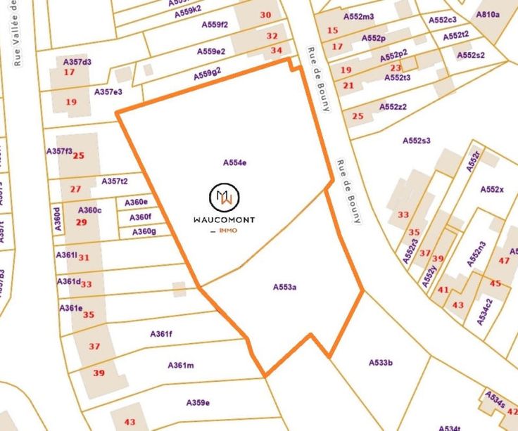 Bien située à Romsée, parcelle de terrain d'environ 4.803 m² en zone d'habitat et en zone d'habitat à caractère rural avec permis obtenu en 2024 pour la construction de 5 maisons (4 mitoyennes et 1 quatre façades). Largeur façade à rue +/- 74 m. Ces parcelles ne font pas partie d'un lotissement, il n'y a donc pas de prescriptions urbanistiques propres à un lotissement. Il y aura toutefois lieu de respecter les prescriptions en vigueur (communales, régionales, ...),. Libre de constructeur et d'architecte. Les frais liés à la viabilisation, aux impétrants (trottoir éventuel, électricité, eau, ...) sont à charge des acquéreurs.Références cadastrales: FLERON , 4ème Division Romsée, Section A, n° 553A et 554E. Adresse: 4624 Romsée, rue du Bouny, à gauche du n°34. Plans et permis disponibles sur demande à info@waucomont.be. Belle situation verdoyante! Beau potentiel! Informations données à titre indicatif et non contractuelles. www.waucomont.be