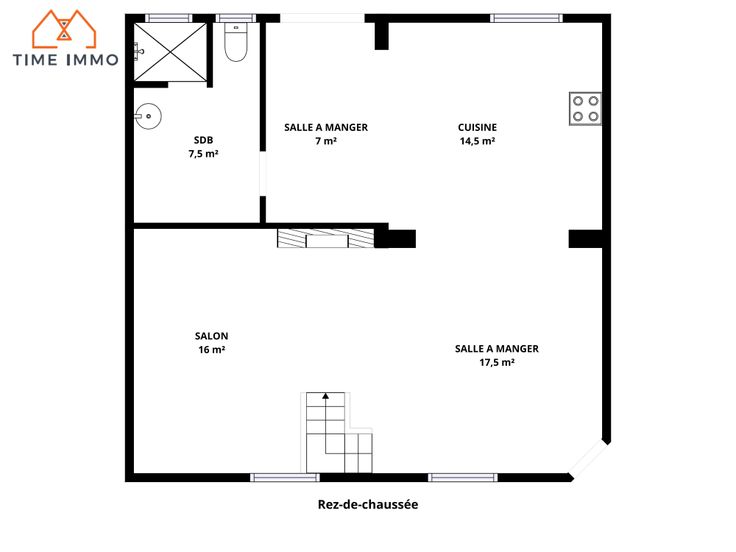 Rez-de-chaussée : Une salle à manger, un salon, une cuisine, une pièce pouvant servir de salle à manger et une salle de douche avec WC