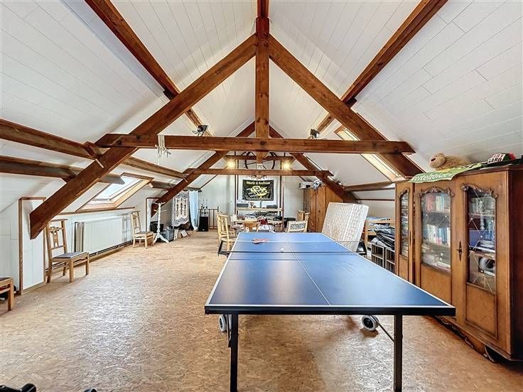 OPENDEUR ZATERDAG 23/11 VAN 11U30 TOT 12U30 Ruime, halfopen gezinswoning met 3 garages op 855m² in het pittoreske Watou. De woning is als volgt ingedeeld: Gelijkvloers: ruime inkomhal, gastentoilet, slaapkamer/bureauruimte, berging/wasplaats, keuken met zicht op de tuin, lichtrijke leefruimte en inpandige garage. 1e verdieping: 5 slaapkamers, apart toilet, twee badkamers waarvan één met douche, ligbad en lavabo en tweede met lavabo en douche. 2e verdieping: polyvalente ruimte met mogelijkheid tot creëren van extra kamers, studio, hobbyruimte... Westgerichte tuin van ±648m² en 2 extra garages waarvan één met uitweg langs de Houtkerkestraat. Troeven: - 20 zonnepanelen - Regenput van 15.000L - Ruime garages met mogelijkheid tot stockageplaatsen - Rustige ligging, doch levendig dorp - Ruime woning met veel mogelijkheden, kangoeroewoning, B&B...