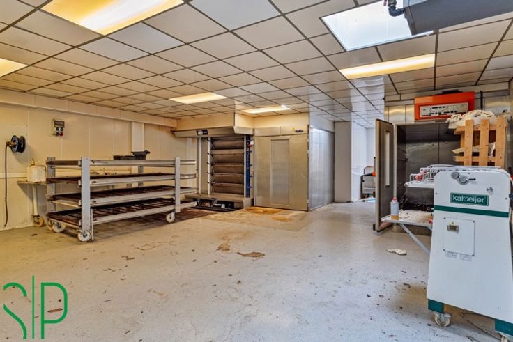 Het gelijkvloers is momenteel in gebruik als bakkerij, maar biedt talloze mogelijkheden voor andere commerciële activiteiten. De voorzijde is zuidelijk georiënteerd met mooie mogelijkheden voor een gezellig terras en zicht op het groene plein. Bij binnenkomst betreedt u de bakkerij met een gezellige verkoopruimte. Aan de achterzijde bevindt zich de werkruimte en een groot magazijn met voldoende opbergruimte voor opslag en logistiek.