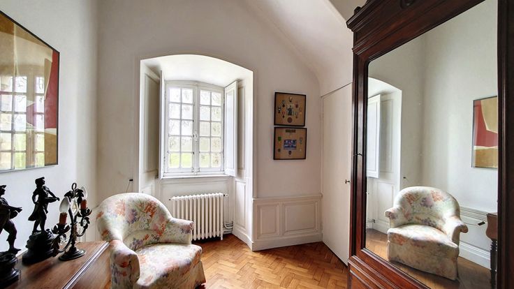 Het kasteel bestaat uit 14 kamers op twee niveaus, waaronder 5 slaapkamers en 5 badkamers, evenals een uitgeruste keuken. Er zijn veel aanpassingen mogelijk dankzij de zolder (120 m²) en de bijgebouwen. Het souterrain van 110 m², met directe toegang tot de erehof, biedt veel mogelijkheden voor verdere ontwikkeling (professionele keuken, enz.).