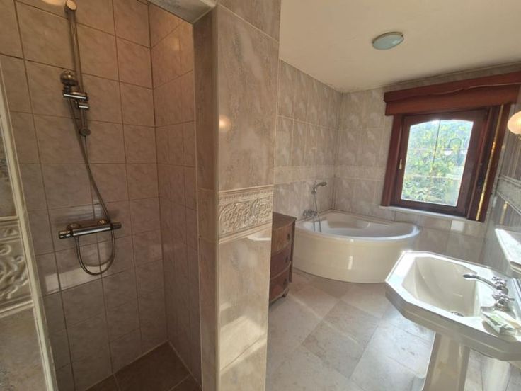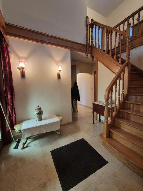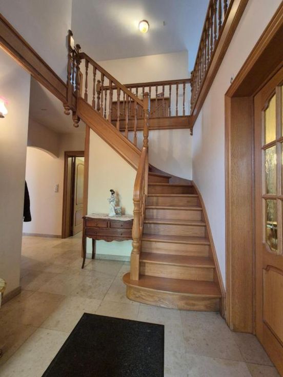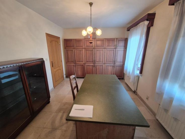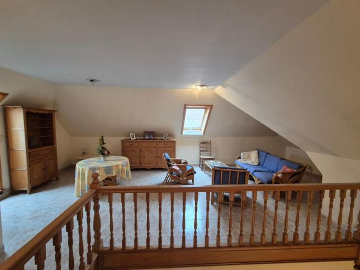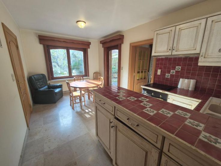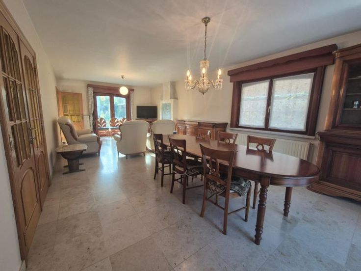 Spacieuse maison au centre de Leuze, comprenant : RDC: hall d'entrée avec cage d'escalier (11 m²), premier WC séparé, grand salon et salle à manger (38 m²), cuisine équipée (four, taques vitrocéramiques, hotte, évier double bac) (15 m²), buanderie avec raccordement machine à laver et évier (9 m²), chambre/bureau (14 m²), salle de bains avec baignoire, douche et évier, second WC séparé; Jardin comprenant une terrasse de 35 m² et une terrasse couverte de 12 m² avec barbecue ; Garage simple (21 m²) avec possibilité d'ouverture vers le jardin, garage double ou atelier (32 m²) (Ouverture de 2,2m de largeur) 1°: Hall de nuit (4,5 m²), deux chambres (15 + 13,5m²), mezzanine (28 m²), WC séparé (5 m²); Informations générales : chauffage central au gbois double vitrage, cave (16 m² + 10 m²), deux citernes de 10.000L chacune; PEB n° 20241114000589 - Indice D