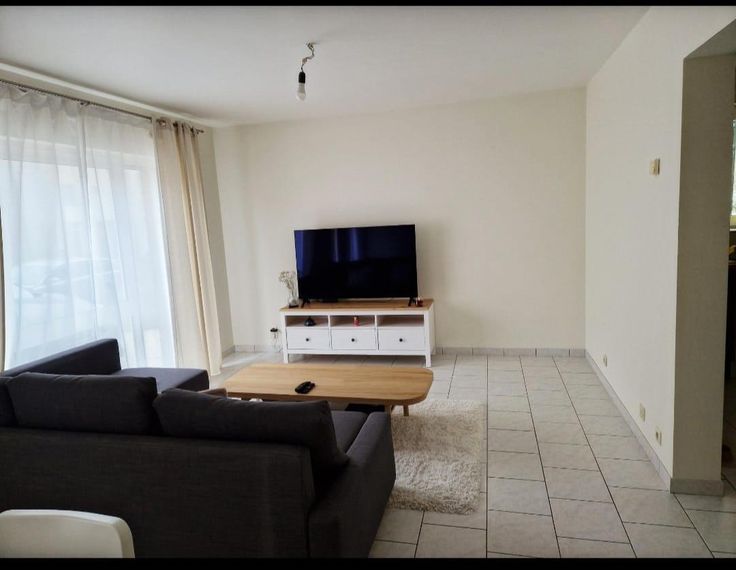Cet appartement au rez-de-chaussée d'une petite résidence, lumineux, spacieux et pratique vous séduira par son ambiance chaleureuse et ses espaces de vie accueillants dans un cadre de verdure., situé à proximité de la gare, du centre et de l'autoroute. Caractéristiques : 2 chambres confortables dont l'une peut servir de dressing, de bureau ou de chambre avec accès direct à la terrasse - 1 espace de vie lumineux avec de grandes fenêtres qui laissent entrer une abondance de lumière naturelle - une cuisine séparée équipée d'un frigo, four, lave-vaisselle -1 une salle de bain propre et fonctionnelle avec baignoire - 1 we séparé - 1 débarras - 1 cave privative - 2 parkings .Très bonne isolation phonique et thermique. L'appartement dispose de ses propres compteurs. Charges communes 85 euros : les charges comprennent l'entretien et l'électricité des communs, l'assurance incendie, l'entretien des extincteurs. Pas de frais d'état des lieux à prévoir. tél. : 00 32 475 56 29 23