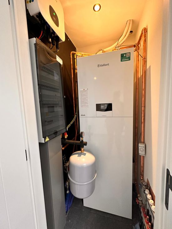 EPC-label A: energiezuinig dankzij vloerisolatie, warmtepomp, muur- en dakisolatie, en zonnepanelen.