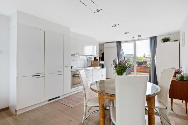 Aanpalend aan de keuken grenst je eigen dakterras. De perfecte plek voor koffie in de ochtendzon, een aperitief na het werk of gewoon een relax moment onder de sterren.
