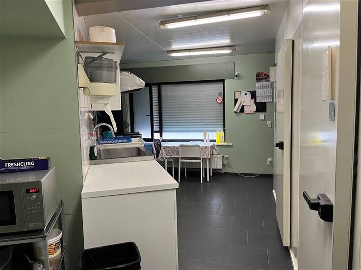 apart afvallokaal - aanpalend studio met aparte inkom naast de frituur. Overal vernieuwde ramen en elektrische rolluiken.