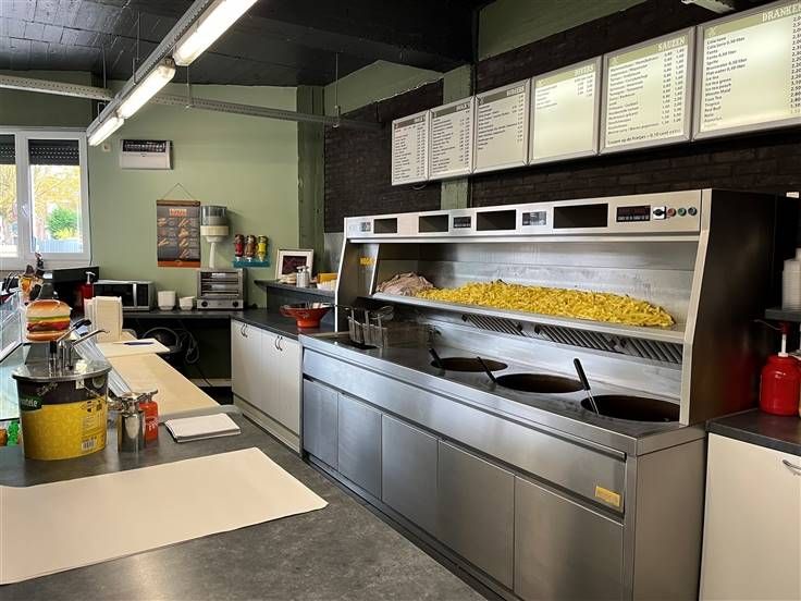Indeling als volgt: gelijkvloers: volledig geïnstalleerde frituur (moderne friteuse HEGRO REVOLUTION) met 16 zitplaatsen en grote koeltoog (2,5m) - bijkeuken/berging met koel-en vriescel -