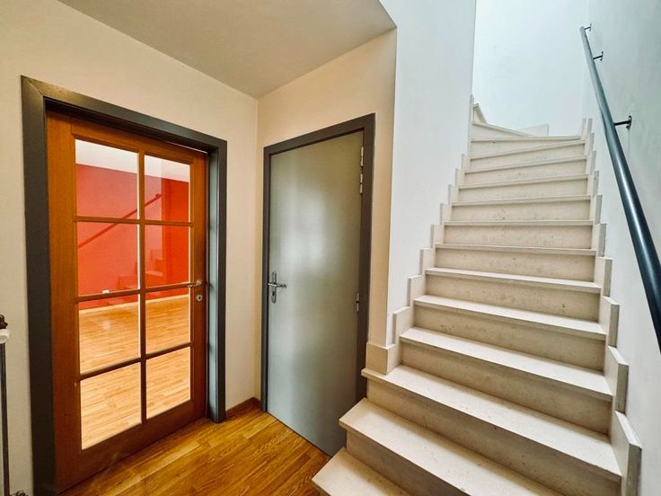 Bij binnenkomst leidt een trap u naar de eerste verdieping, waar u verwelkomd wordt door een praktische inkomhal met een apart toilet en voorzieningen voor een wasmachine en droogkast. Aan de rechterkant treft u een royale, lichtrijke woonkamer die over de hele verdieping doorloopt, met een open keuken die naadloos aansluit op de leefruimte. Vanuit de keuken heeft u toegang tot een ruim terras, waar u kunt genieten van een prachtig open uitzicht op de omliggende gebouwen en het groene landschap.