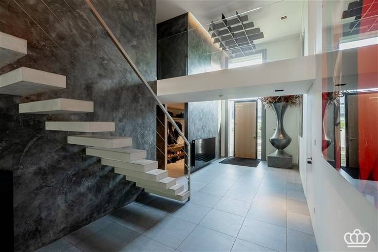 Inkomhal, vestiaire, gastentoilet, technische ruimte, wasplaats, berging, fitnessruimte, wijnruimte, inpandige garage, gastenkamer met douchekamer. Wellnessruimte met binnenzwembad, jacuzzi, bar en loungehoek.