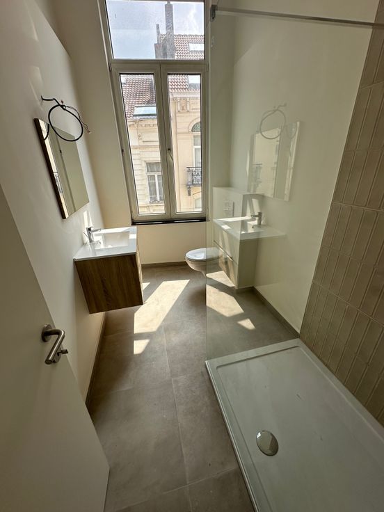 A distance à pied du Métro Louise et à proximité du Sablon. Au 2ème étage d'un Hotel de Maître. Agréable et lumineux appartement totalement rénové comprenant un hall desservant ,un living avec sa cuisine ouverte super équipée et une jolie terrasse. une belle chambre avec balcon et une grande salle de douche. BAIL SOCIETE OK et POSSIBILITE MEUBLE VISITE 0470622042 Email didier@dv-consult.be