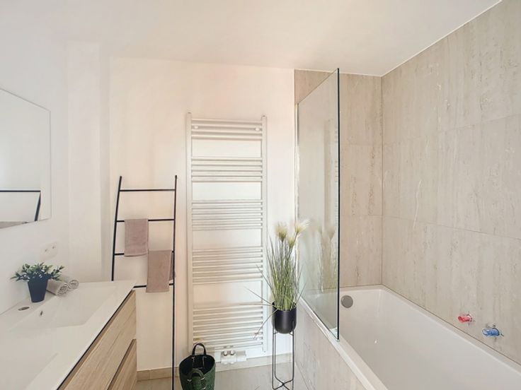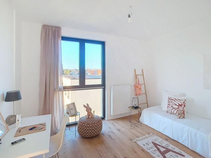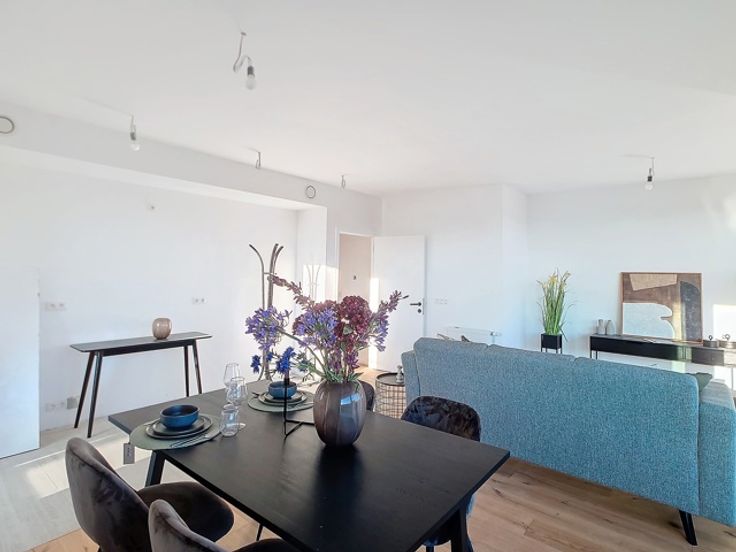 “Lavendel Zaventem" is ideaal gelegen in de nabijheid van de grote verkeersassen en is een project voor meerdere generaties met 15 appartementen en 6 huizen. Opmerkelijke ligging vlakbij het centrum van Nossegem, Zaventem en Brussel, maar ook vlakbij de grote verkeersaders E40, E411, E314 alsook trein en bus. Restauranten, scholen, culturele centra, sportcentra en de luchthaven zijn allemaal gemakkelijk bereikbaar met de auto. De eigentijdse architectuur, geïntegreerd in de omringende gebouwen, zal (doorgaande) flats met veel lichtinval en woningen met 1, 2 en 3 slaapkamers omvatten. De esthetiek van de lijnen, het eigentijdse design van de inrichtingen, de keuze van kwaliteitsmaterialen en afwerkingen zullen bijdragen tot een elegante sfeer met edele en duurzame materialen zoals brede eikenhouten vloeren, eigentijdse keukens met Corian werkbladen, gefineerde badkamermeubels en wastafels Corian-type. Er is veel aandacht besteed aan de maximalisatie van de leefruimte en de opslagruimte, evenals over de binnenafwerking. Vanuit energetisch oogpunt voldoet de constructie aan de strenge eisen van het Vlaamse Gewest. Energie-efficiëntie en duurzaamheid waren de pijlers van het ontwerp van het gebouw. Het appartementsgebouw is gesloten voor het publiek en is voorzien van een videofoon bij de ingang. De ingang van de parkeergarage is voorzien van een sectionaaldeur, ook met videofoon. Mogelijkheid om parkeerplaats en kelder bij te kopen BTW 6% onder voorwaarden -