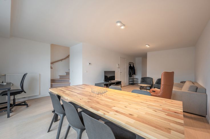 Dit prachtig gelegen duplexappartement bevindt zich op een toplocatie, op wandelafstand van het strand, openbaar vervoer en het bruisende centrum van Knokke. Dankzij de unieke locatie bevinden alle winkels en faciliteiten zich binnen handbereik. Indeling: De inkomhal geeft toegang tot een ruime, lichtrijke woonkamer met directe toegang tot een ruim en zonnig terras. Aansluitend bevindt zich de eetkamer en een open, volledig ingerichte keuken. Verder biedt deze verdieping een praktische berging en een apart gastentoilet. Verdieping: Op de bovenverdieping vindt u twee royale slaapkamers, beide geschikt voor tweepersoonsbedden. De master bedroom beschikt over een eigen badkamer, terwijl de tweede slaapkamer voorzien is van een douchekamer met toilet. Extra: Er is een mogelijkheid om een garage met autolift aan te kopen in de residentie. Bovendien is er een fietsenberging voorzien. Voor meer informatie of een afspraak voor een bezichtiging kunt u contact opnemen via 050/62.44.14 of bezoek onze website op www.immax.be.