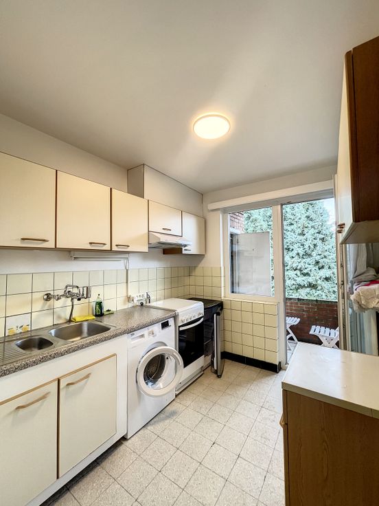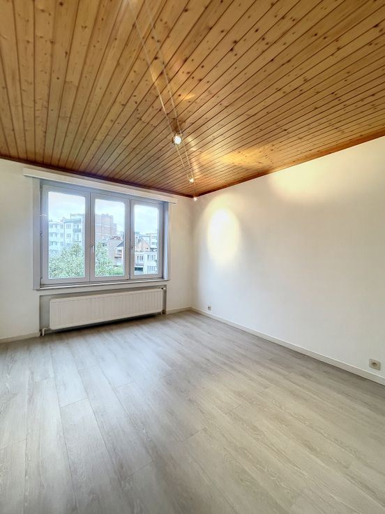 IPI 511642 5 minuten van metrostation Hankar. Prachtige lichte flat van +/- 65 m² met een slaapkamer. Het bestaat uit een hal, wc, een lichte woonkamer, een semi-ingerichte keuken met balkon, 1 slaapkamer, badkamer. Kosten €40 provisie voor gemeenschappelijke ruimtes PEB D.