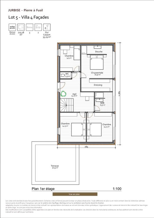 Compose de quatre chambres, un bureau, deux toilettes, deux salles de bain, buanderie et un séjour-cuisine de 78 m².