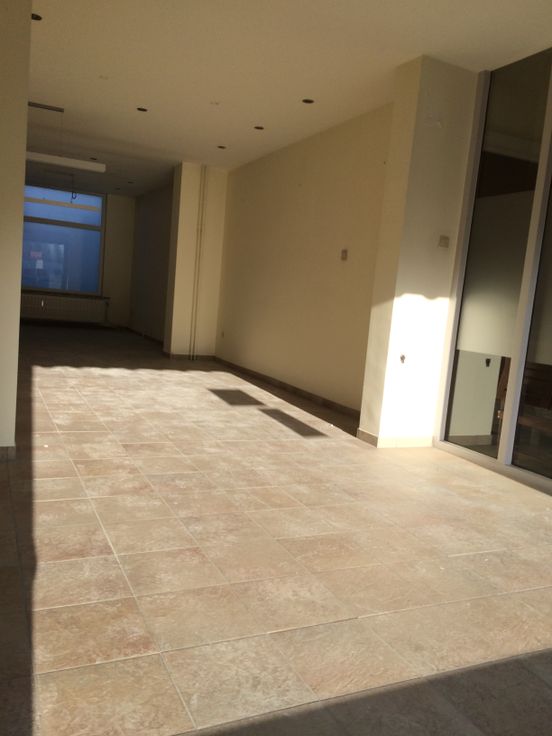 Lichte, ruime locatie met grote raampartijen aan de straatkant.