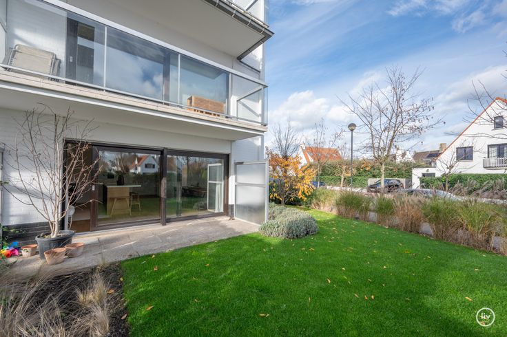 Gezellig,gerenoveerd gelijkvloersappartement met mooie tuin centraal gelegen in de Eeuwfeestlaan te Knokke.