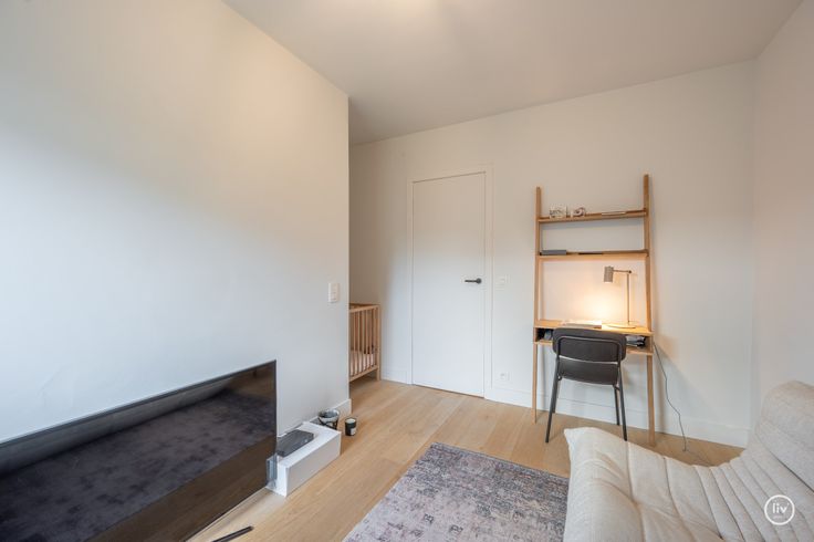 inkomhall met apart toilet, aangename mooie leefruimte met leefkeuken en open bijkeuken toegang tot de mooie zonnige tuin, eetgedeelte. 2 mooie slaapkamers waarvan één met douchekamer en andere met polyvalente ruimte voor eventueel 2 de douchekamer, of extra berging.