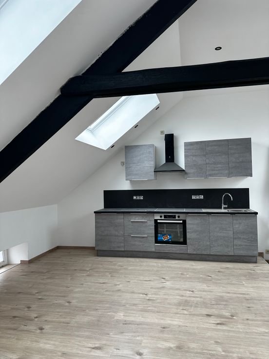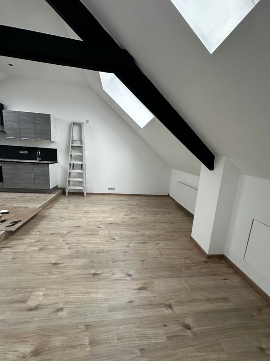 Superbe duplex de 100 m2 très lumineux situé au premier et deuxième étages d'une maison fraîchement rénovée à louer à Mettet. Première occupation.